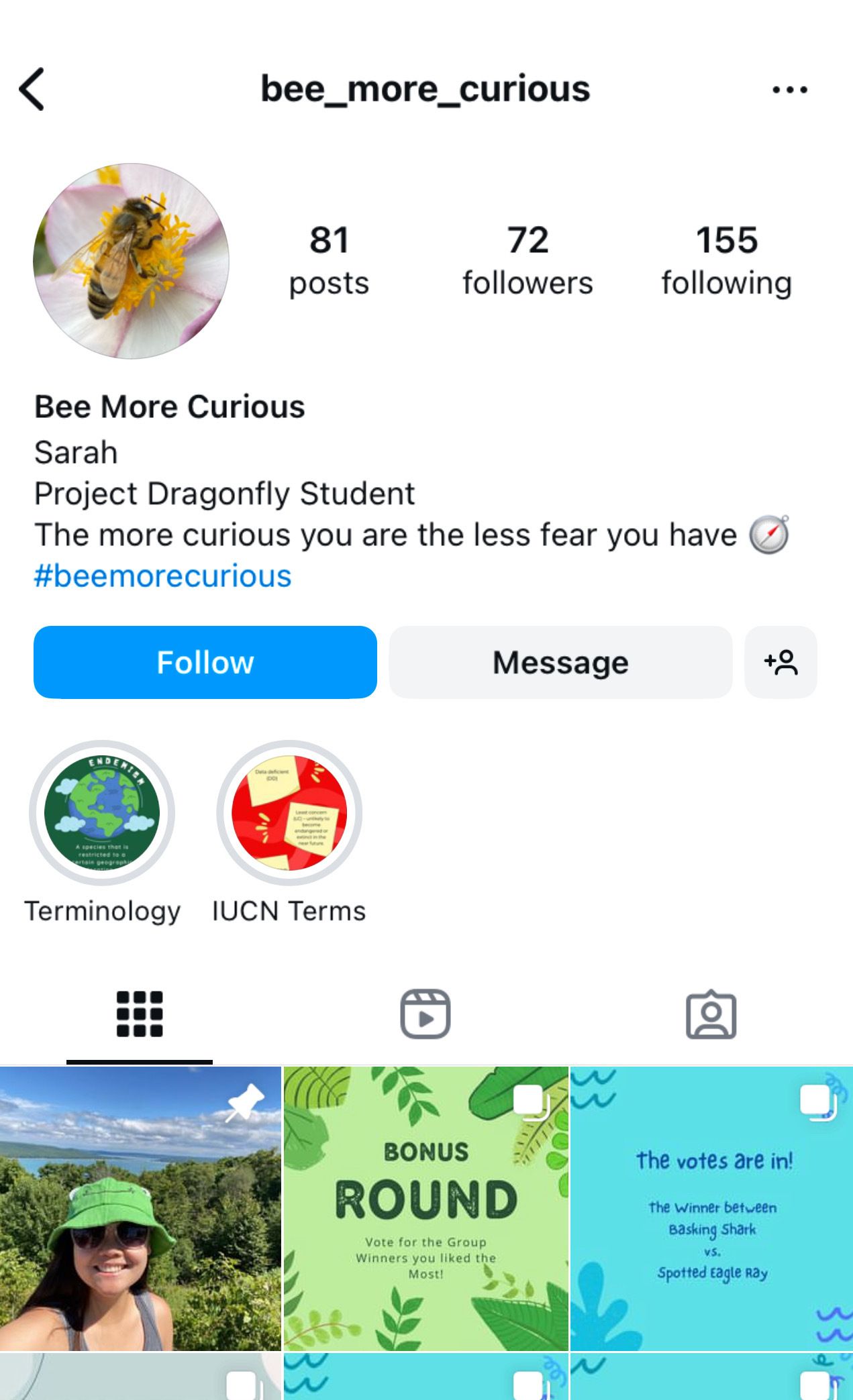 Today, it is not uncommon to find ourselves "doom scrolling", or scrolling endlessly without a goal, on platforms like Instagram, TikTok, Twitter, and Facebook. We are constantly seeing images of things we would not see on a typical day without the use of social media. For example, we can see the day-to-day lives of people worldwide, providing the opportunity to learn more about the world around us. Thus, social media is the perfect place to inspire and connect people with conservation topics outside the pressure of traditional education practices and in settings that encourage informal learning.