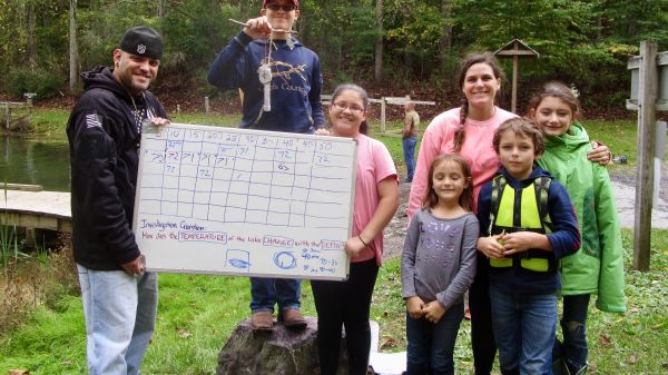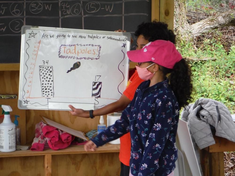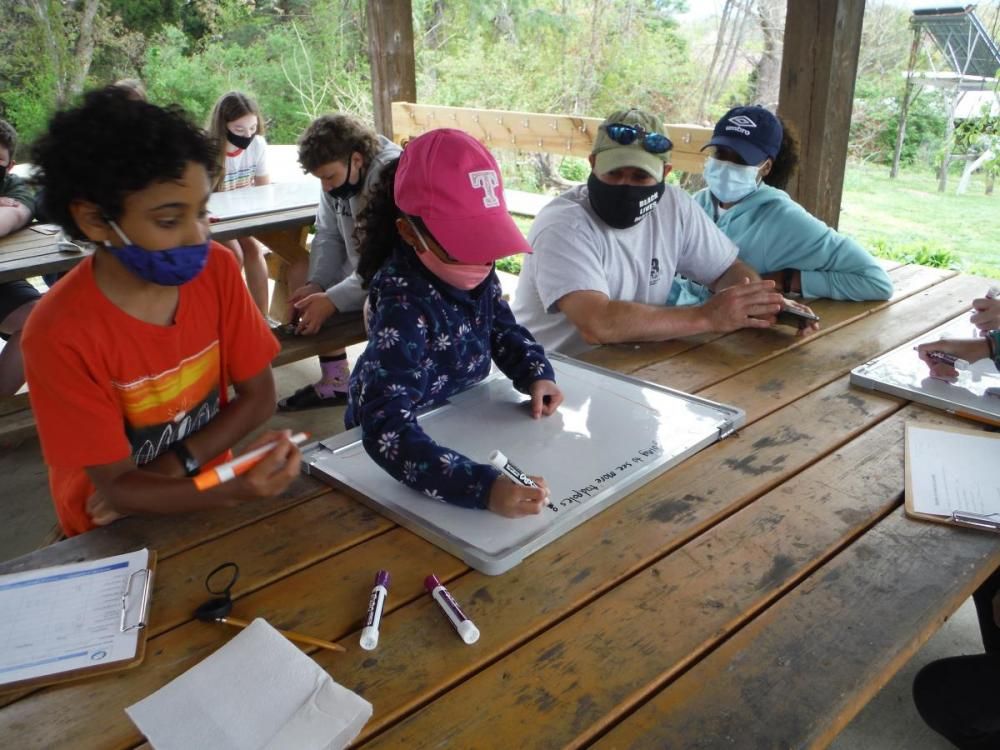 Families like generating graphs with their collected data and sharing their findings with other family teams. Sometimes parents help; sometimes kids do the work. Photo credit: Boxerwood Education Association