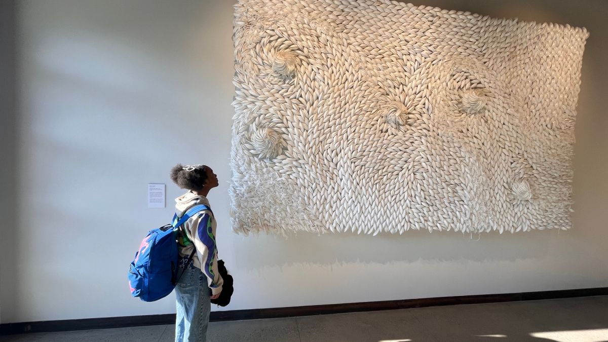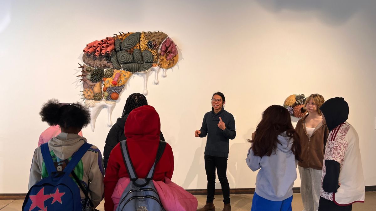 ECS Climate Action Team students enjoy a docent-led tour of the Climate Awakening art exhibit. Photo credit: Sarada Sangameswaran