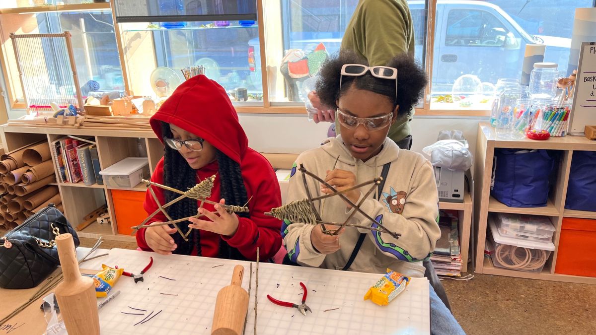 ECS Climate Action Team create sustainable art out of willow branches during a field trip. Photo credit: Sarada Sangameswaran