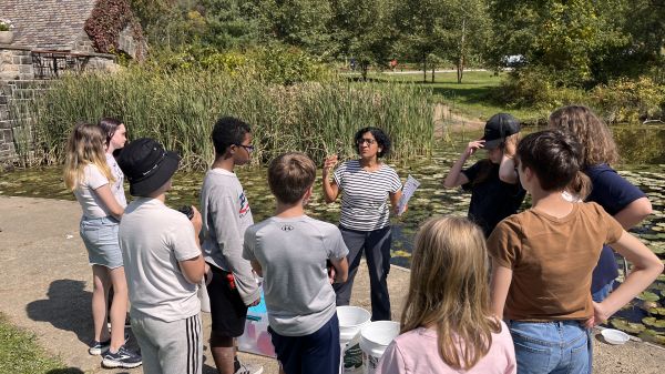 ECS Climate Action Students discuss findings from a water quality study. Photo credit: Sarada Sangameswaran