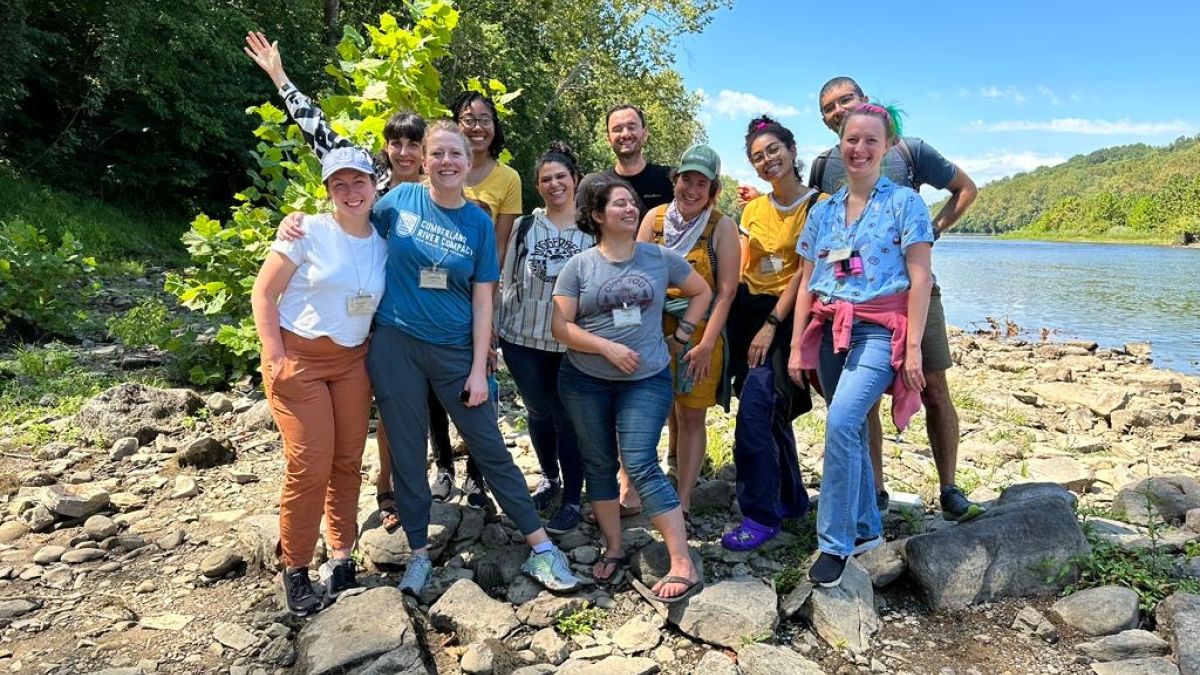 CEE-Change Fellows gather along the Potomac during the leadership retreat. Photo credit: Catherine Price