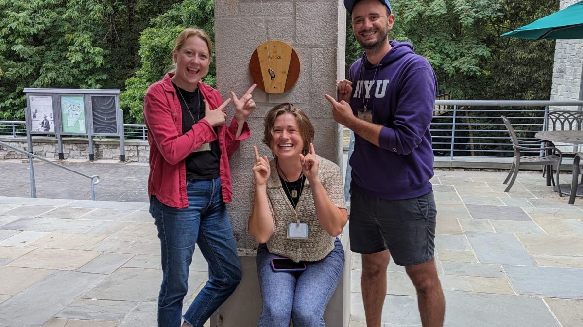 2023 CEE-Change Fellow Ring Toss Champions Catherine Price, Hannah Barg, and Jeff Geist. Photo credit: Elizabeth Hermann