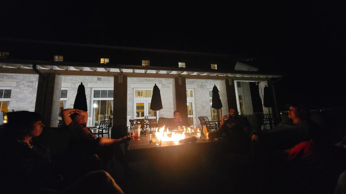 CEE-Change Fellows sitting by the fire on the first night of the CEE-Change Leadership Training Institute. Photo credit: Jeff Geist