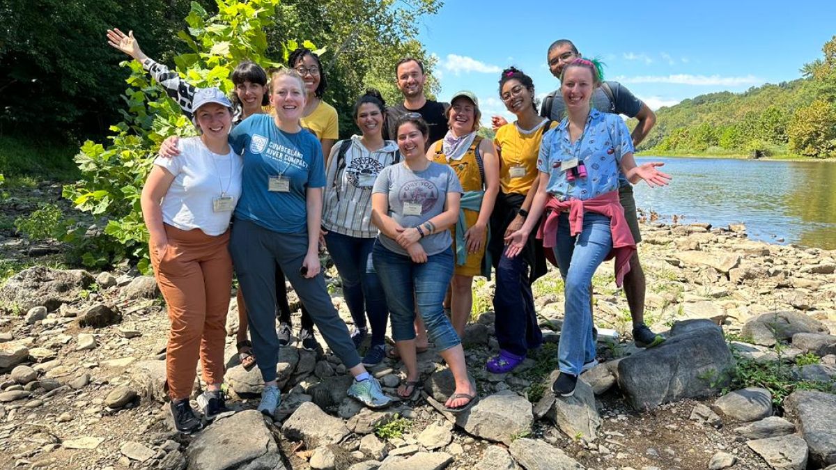 Group photo of the 2023 CEE-Change Fellows cohort on the Potomac River. Photo credit: Danny Woolums