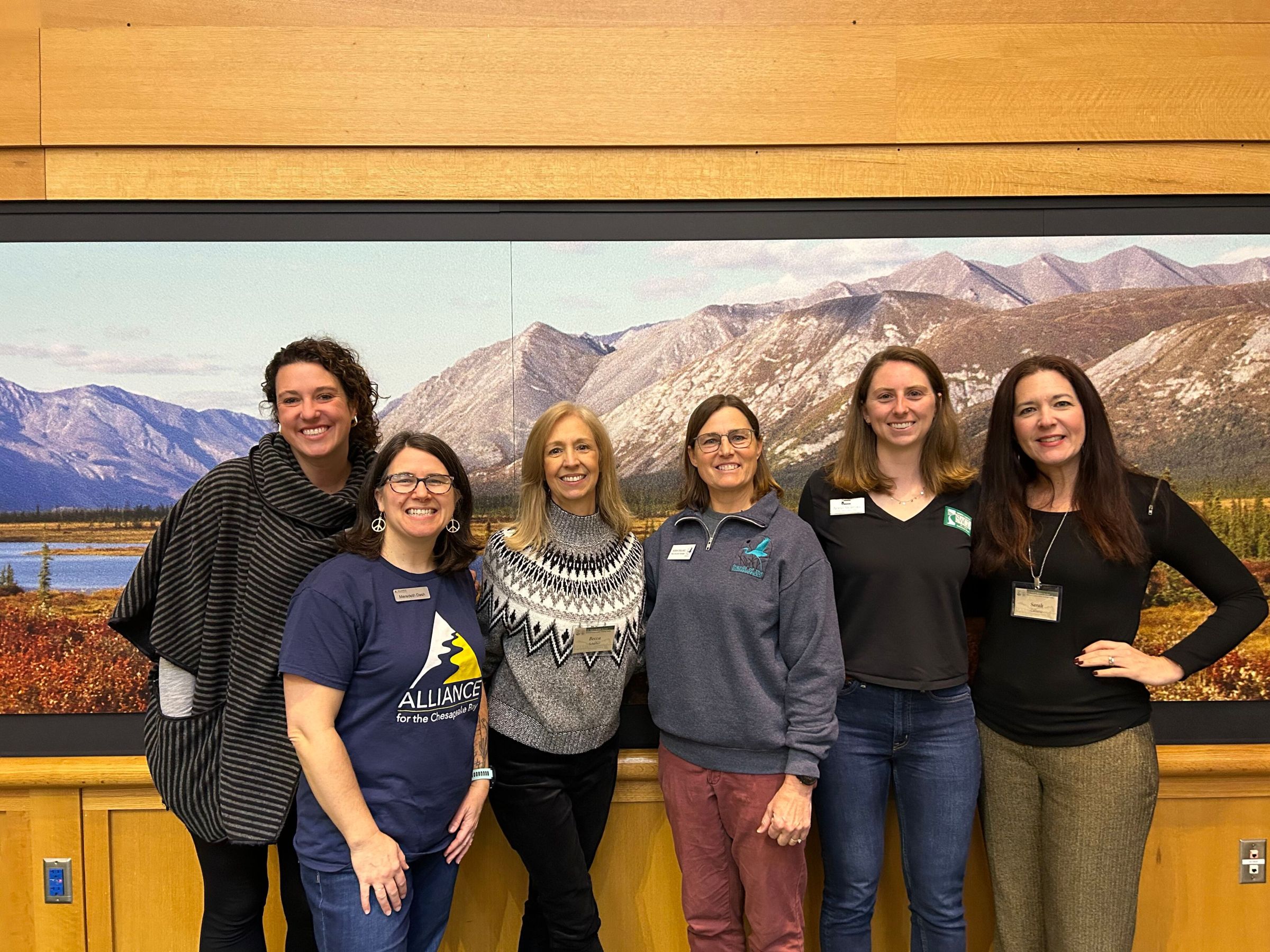 Caroline County Public Schools’ Environmental Literacy Plan Partner Team. Pictured from left to right: Autumn Nabors, Director of Secondary Education, CCPS; Meredeth Dash, Virginia EE Specialist, Alliance for the Chesapeake Bay; Becca Schieber, Science Instructional Specialist, CCPS; Robin Didlake, Tidal Education Manager, Friends of the Rappahannock; Anna Moreau, Education Specialist, Hanover-Caroline Soil & Water Cons. District; Dr. Sarah Calveric, Superintendent, CCPS. Photo credit: Meredeth Dash