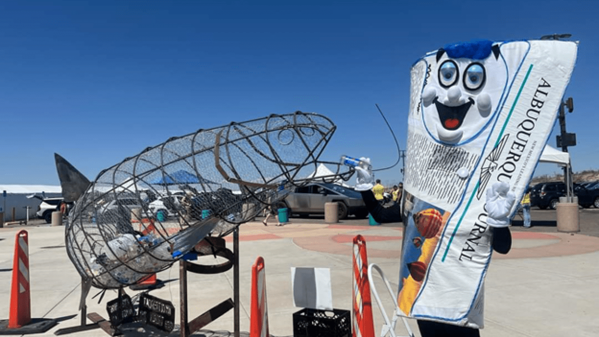 Garbanzo Snout and Albuquerque Newspaper Mascot. Photo credit: Vanessa Barela