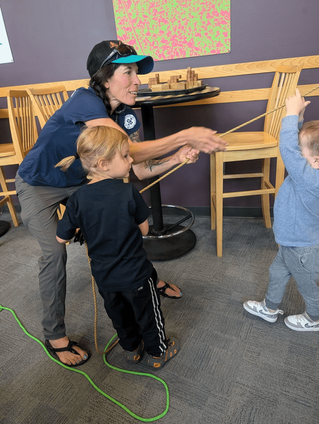 Therese Baca-Radler and my Vanessa Barela's son Guillermo demonstrating high angle ropes rescue at a public event. Photo credit: Vanessa Barela