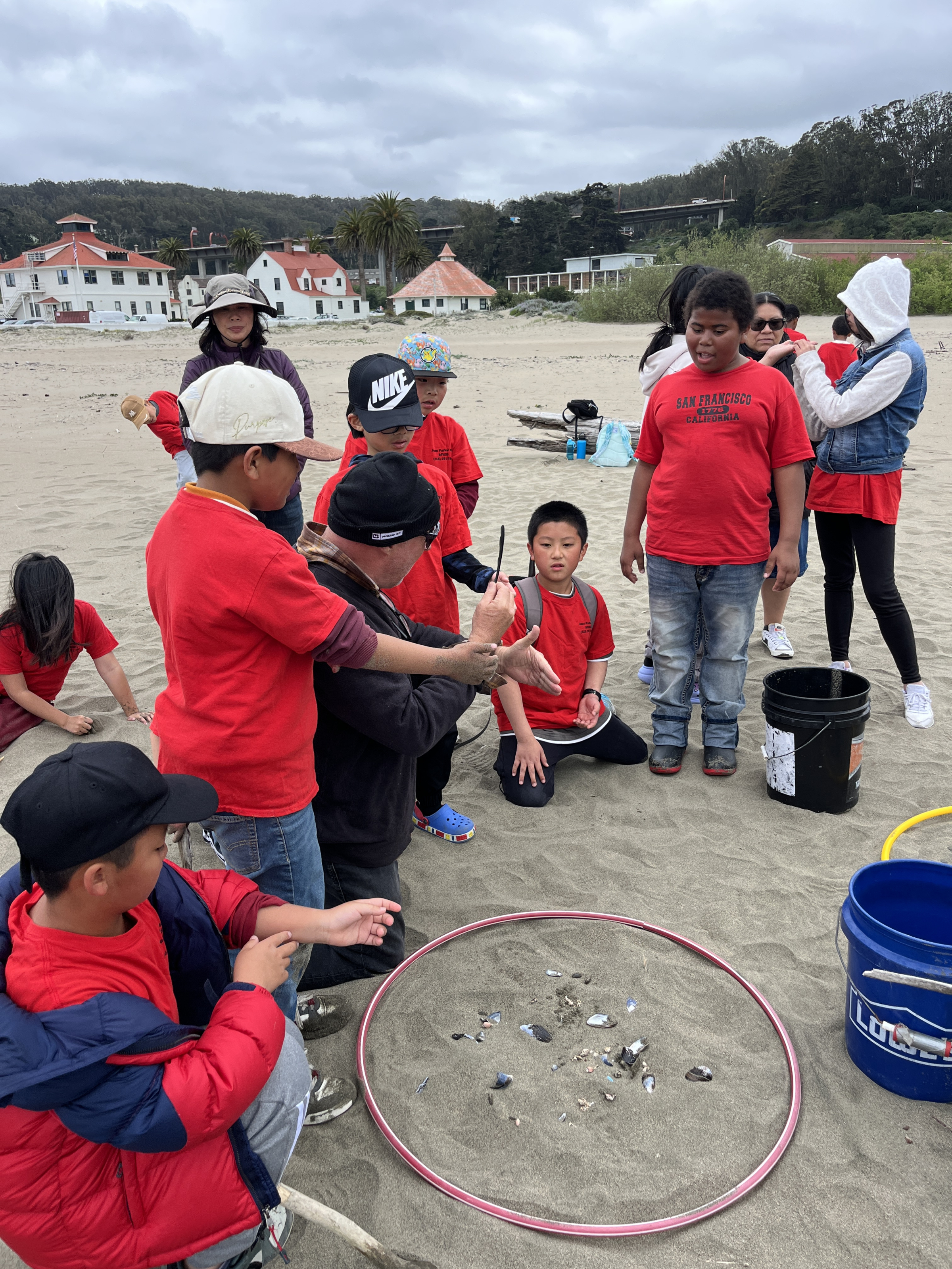 Sand crab monitoring is one of the immersive experiences that the Long-Term Monitoring Program and Experiential Training for Students (LiMPETS) conducts with students. LiMPETS is a statewide program of California, and the Greater Farallones Association (GFA) is a key partner that engages students in the San Francisco Bay Area and California North Coast. The goal is to educate, inspire, and empower youth to feel engaged as ocean stewards and increase environmental literacy through immersive coastal learning experiences. The program focuses on middle and high school students, but with support from the eeBLUE 21st CCLC Watershed STEM Education Partnership Grant Program, we expanded and adapted the experience to involve younger students. Specifically, we adapted the curriculum to focus on giving third through fifth grade students from Jean Parker Elementary in San Francisco science enrichment that utilizes all their senses, both in the classroom and in the field.