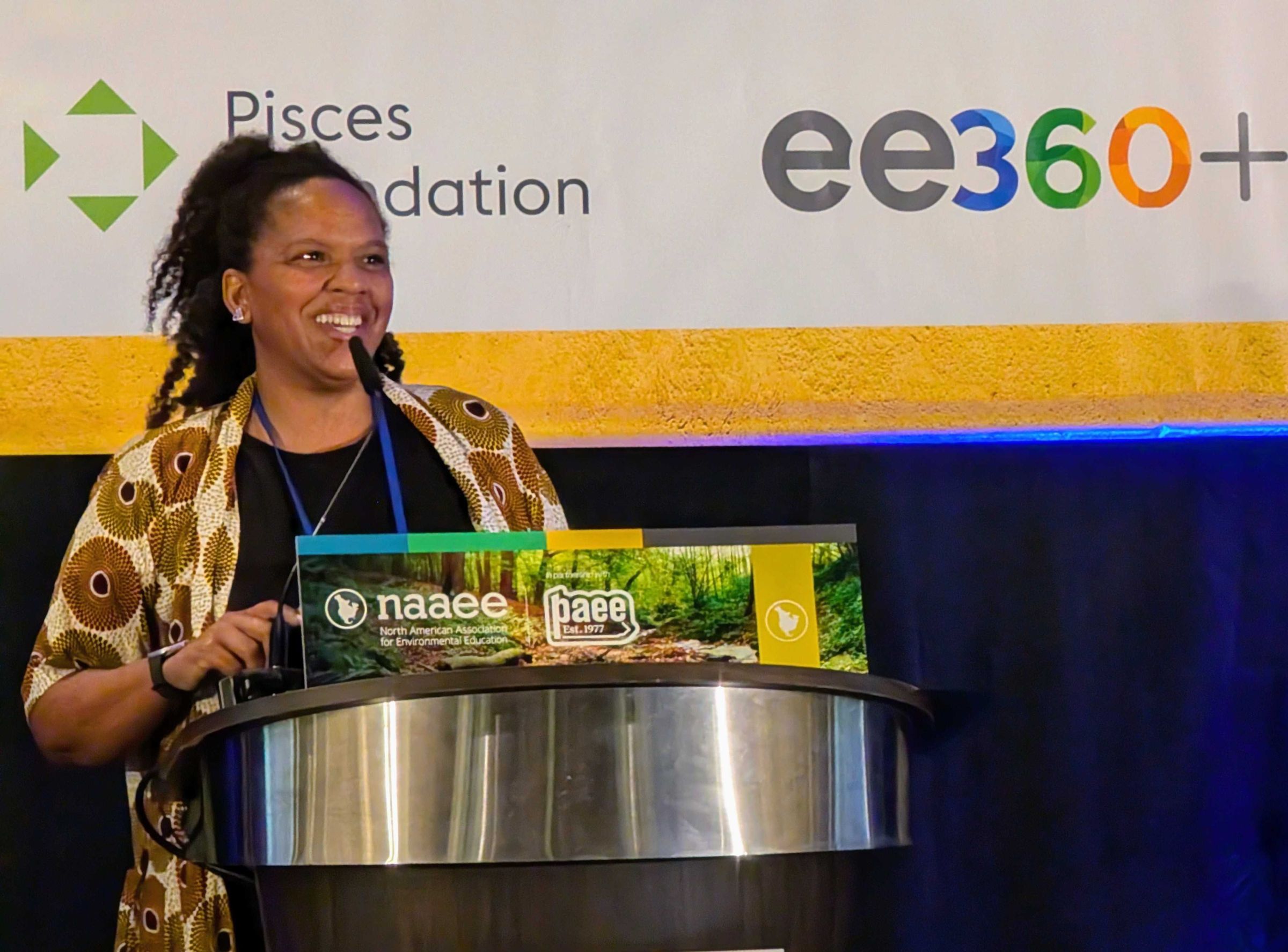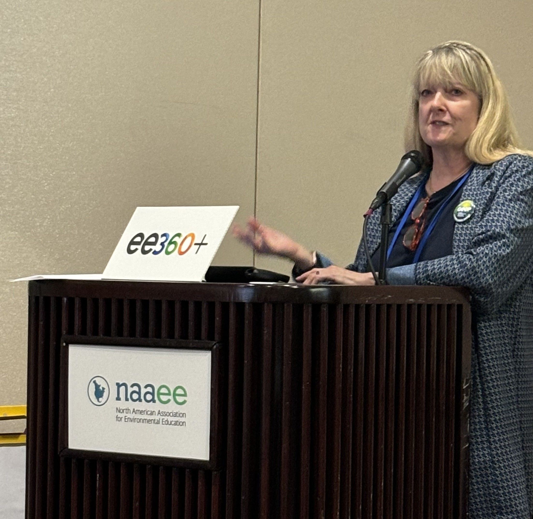 Ginger Potter, senior environmental education specialist in the Office of Public Engagement and Environmental Education (OPEEE) for the U.S. Environmental Protection Agency, speaks at the ee360+ Partner Gathering.