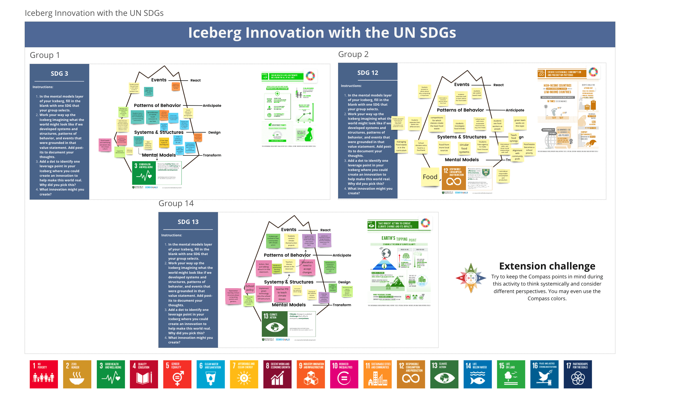 Photos of workshop activity Iceberg Innovation with the UN SDGs. Photo credit: Gitanjali Paul