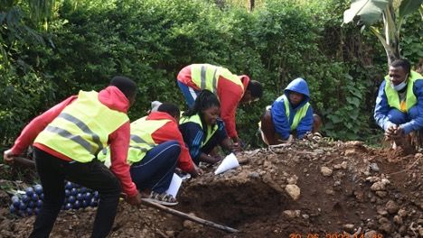 Etefop TSS Saint Charles School, Rwanda, making Eco Bricks to construct Green Water Tank. Green Growth Africa.