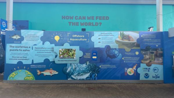 This unique partnership encompassing academia, industry, and public education was formed to translate offshore aquaculture information to improve aquaculture literacy and confidence amongst exhibit viewers. The exhibit is an example of building partnerships that bring research to life.
