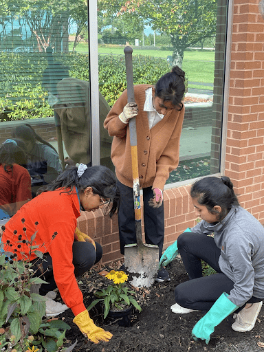 Students working in the school pollinator garden. Photo credit: Sheri Soyka
