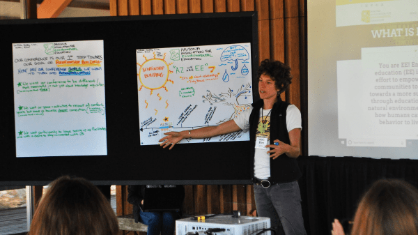 Ready for the surprise ending? How many of you were also blown away when you first learned about “Pando”, the grove of aspens in Utah that stands as one of the most massive organisms on Earth? I know I was. The reason this aspen grove is defined as a single massive organism is because it all stems from a root system called a rhizome. While above ground, you see a grove of individual trees, if you look below you’ll see their unifying highways of energy moving between them. Why on earth am I suddenly talking about rhizomatic root systems? Because while I thought I was watering and tending to various trees in my project forest, I discovered that the reason these projects were growing with resiliency and vigor was their root system: the ee360 Community Fellowship. The trainings, networking, and lifelong friendships that this Fellowship has helped me grow are both astounding and inseparable. From what I thought was a lone project: the Natural Start Regional Network emerged a grove of striking new connections. My town, Prescott, AZ is now poised to host the largest Earth Day celebration in Central Arizona thanks to my local team of nonprofits and the assistance of Fellow Tracey Ritchie. One of my undergraduate students is planning to head to India next fall to work with the Centre for Environmental Education thanks to an opportunity given by Fellow Bijoy Goswami. This spring & summer the EE program at Prescott College (where I teach) will be offering a new internship opportunity in conjunction with the Hurricane Island Center for Science and Leadership thanks to Fellow Jenn Page. And, this is just the beginning. To close this journey through space and time, through a forest of projects big and small, I have only three words: Thank you, NAAEE. Wait, just a few more: Dream it and go for it, who knows what else will sprout along the way?