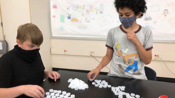 Back at school, at the start of each program day, students emptied their pockets and bags with their bottle cap booty from home. They made piles, weighed their load, patiently counted bottle caps, and graphed their results. To encourage student voice and choice, students decided how to divide themselves into three teams, what to name their teams, and where to scavenge for caps. Most students gathered caps from family and friends and by looking around the streets in their neighborhood. On the last day of the Year One program, they hooped and hollered when they learned how many plastic bottle caps they contributed to SoundWaters’ One Million Bottle Cap Project—an NOAA-funded initiative in Stamford, CT. SoundWaters staff met with students virtually on the final day to thank them for their contribution and to show them how their teams and contributions would appear on their website.