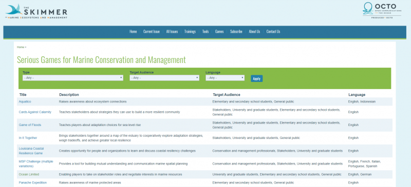 Serious Games for Coastal and Marine Conservation, Management, and Adaptation – Find a Game for Your Work!