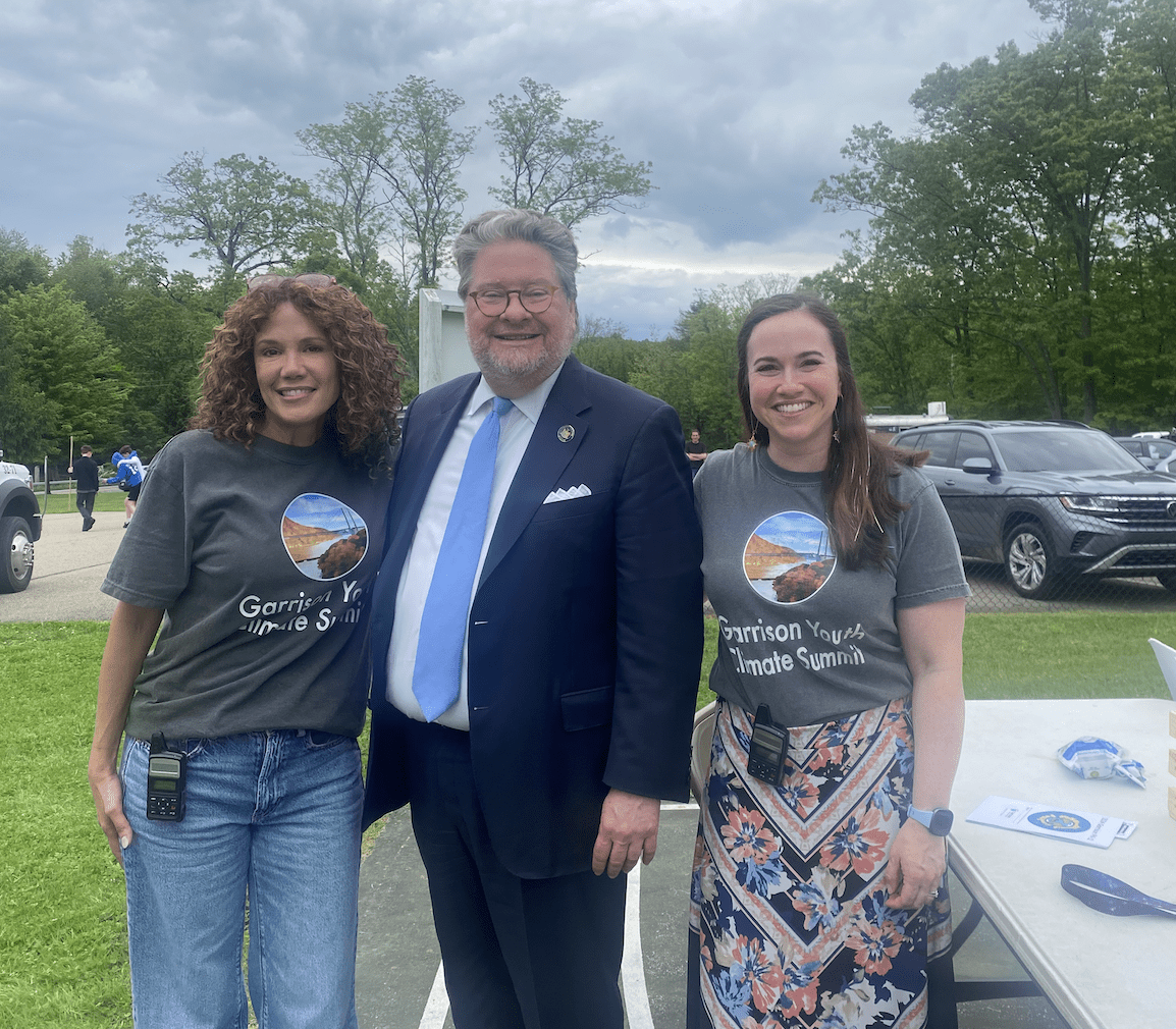 Allison Emig (Garrison Union Free School District Principal, left), NY State Senator Pete Harckham (middle), and Rachel Arbor (Director of Environmental Education, right) pose at the evening event of the Youth Climate Summit. Photo courtesy of Garrison Union Free School District
