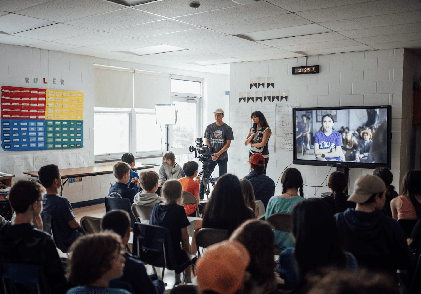 PK–12 students and teachers from 12 surrounding school districts gather to watch the 5th–8th grade student Keynote Speech. Photo courtesy of Garrison Union Free School District