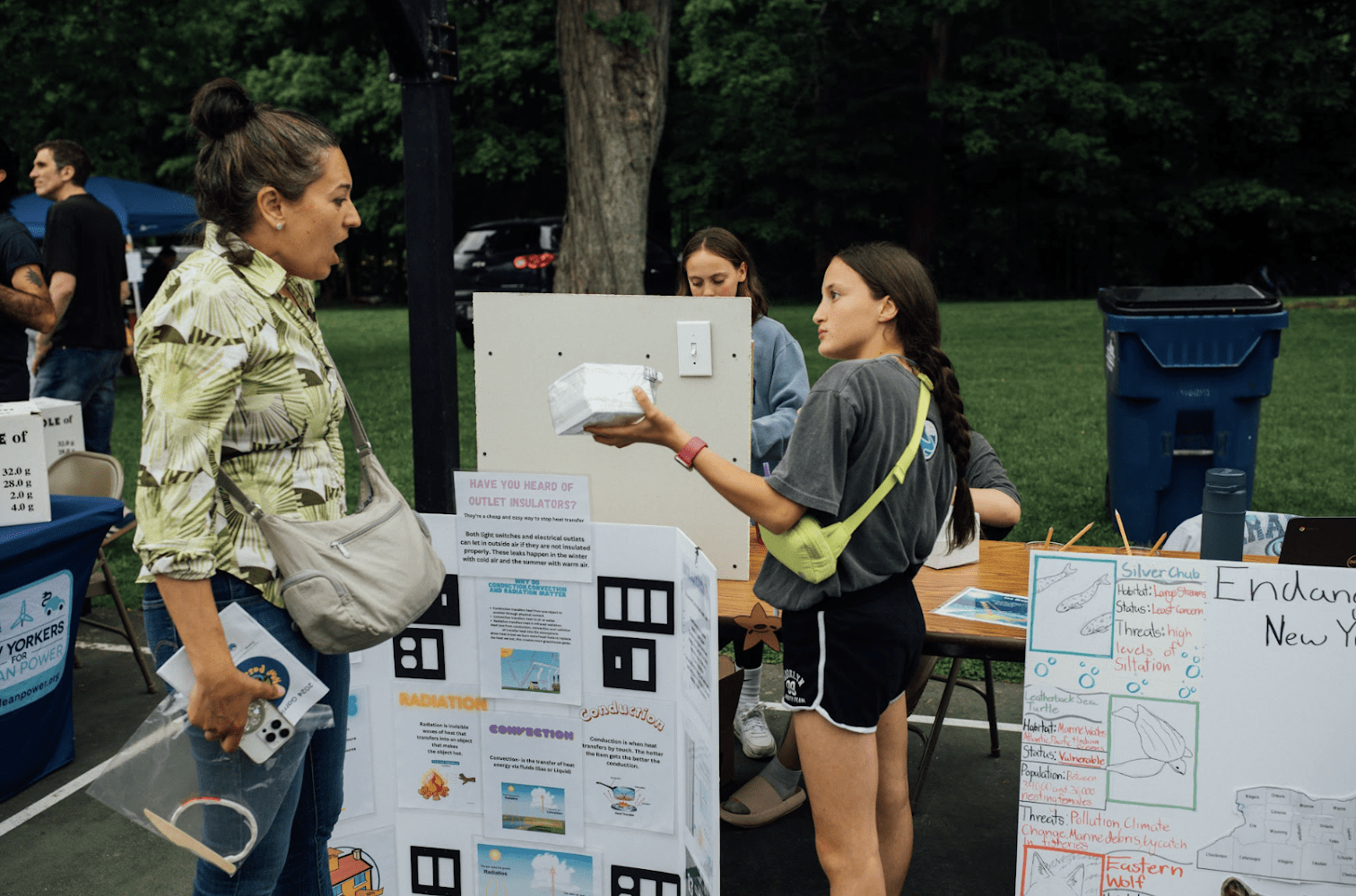 5th-grader educates the public on residential heat loss and gives away free outlet insulators she fundraised for at the evening event of the Summit. Photo Credit: Erin Wik Photography.