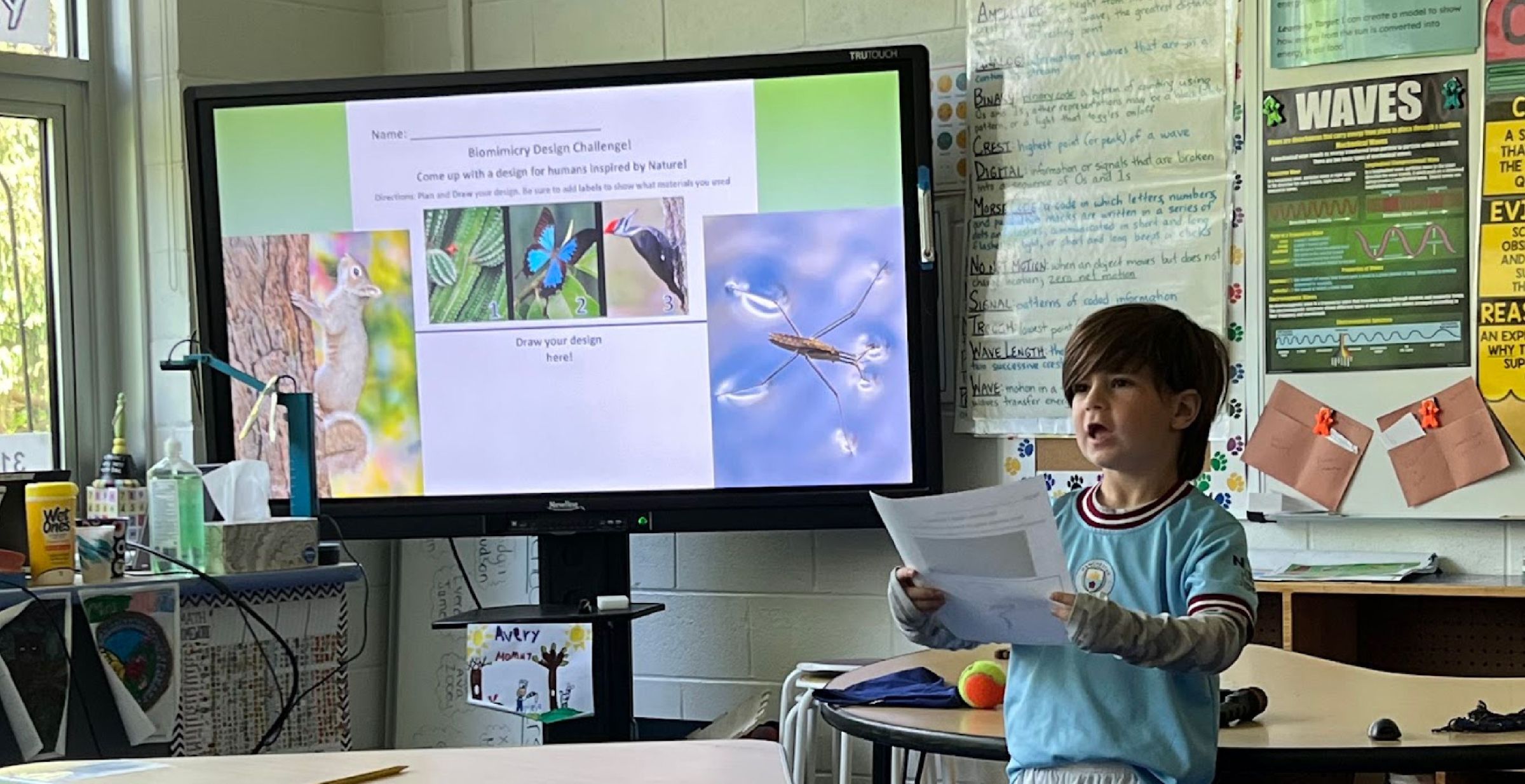 Kindergartener presents his biomimicry solution to his peers at an engineering workshop during the daytime event of the Summit. Photo courtesy of Garrison Union Free School District