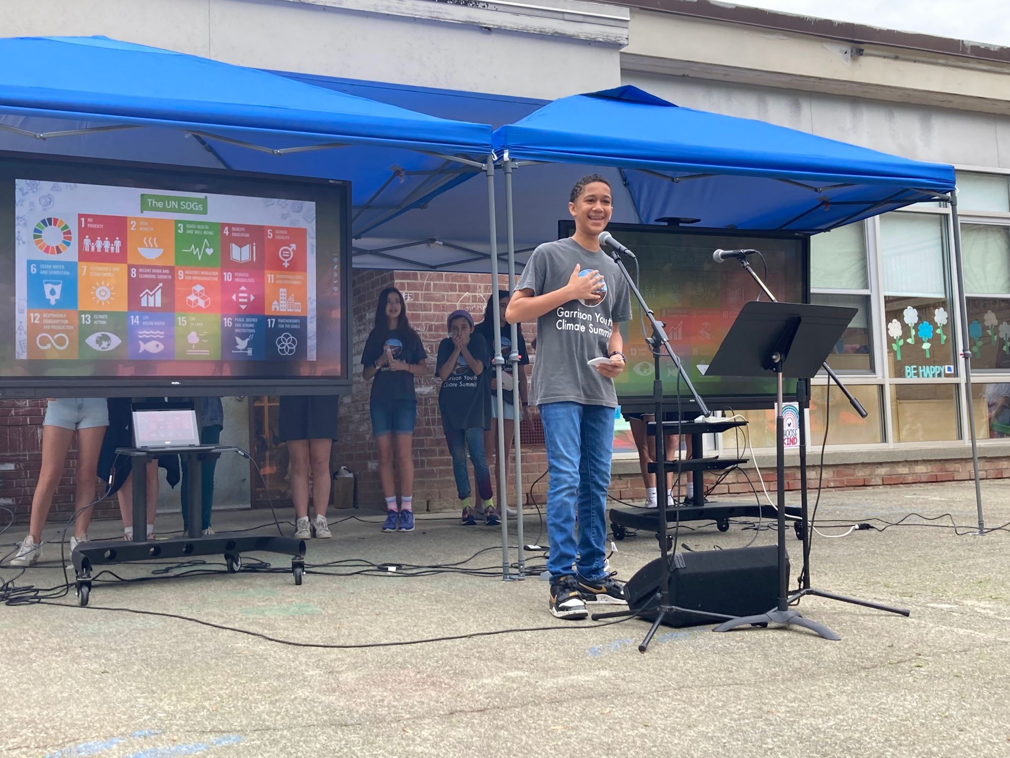 8th grader explains the UN SDGs through the lens of his passion project: minimizing point source pollution in the Hudson Valley through a petition he organized and sent to local legislators. Photo courtesy of Garrison Union Free School District