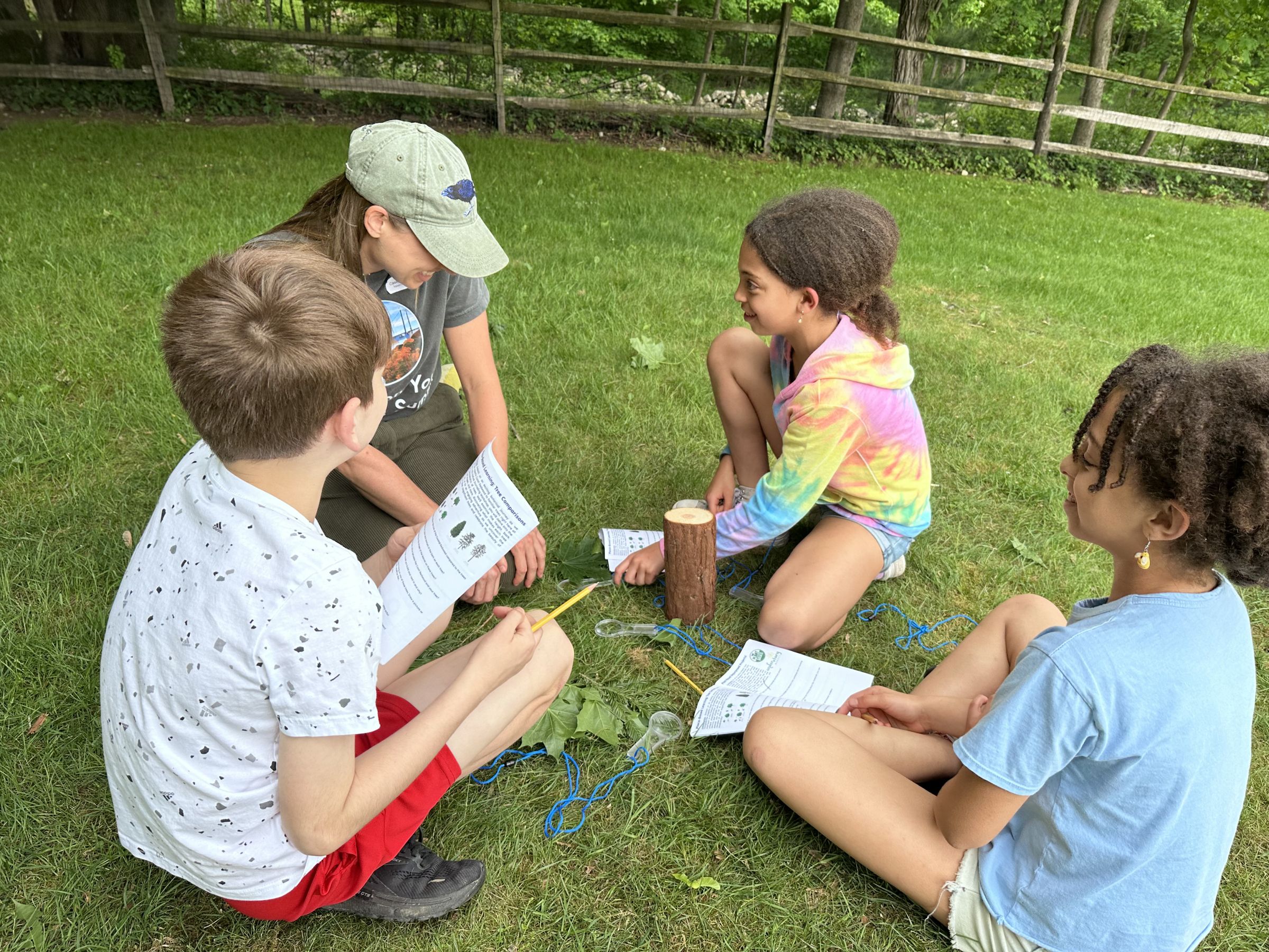 4th-graders compare and contrast redwood trees with local maples, oaks, and pines in an arboreal place-based learning workshop at the daytime event of the Summit. Photo courtesy of Garrison Union Free School District