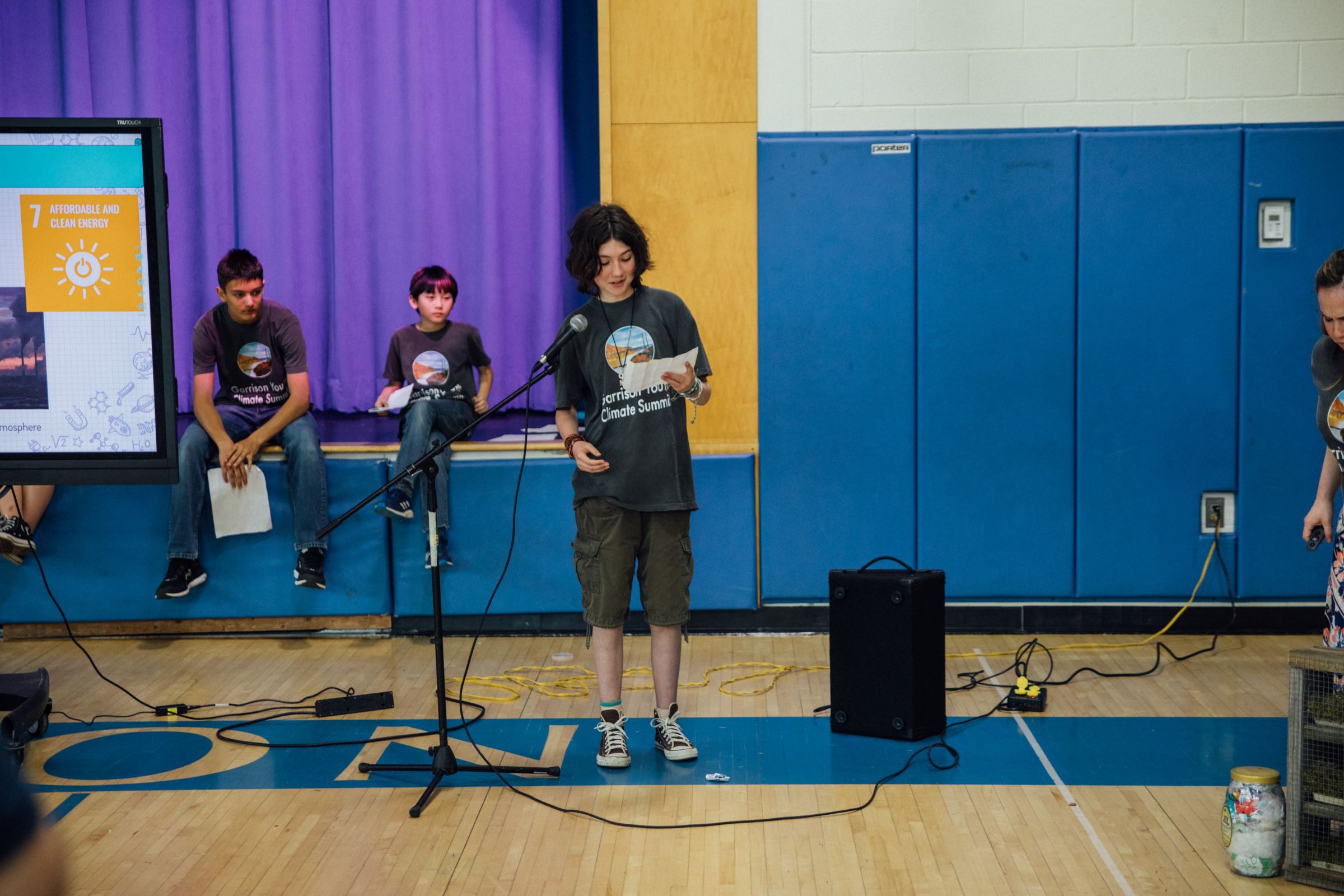 Garrison 7th-grader discusses Air Pollution and the UN Sustainable Development Goals in her Keynote Presentation at the evening event of the Youth Climate Summit on May 12th, 2023. Photo Credit: Erik Wik