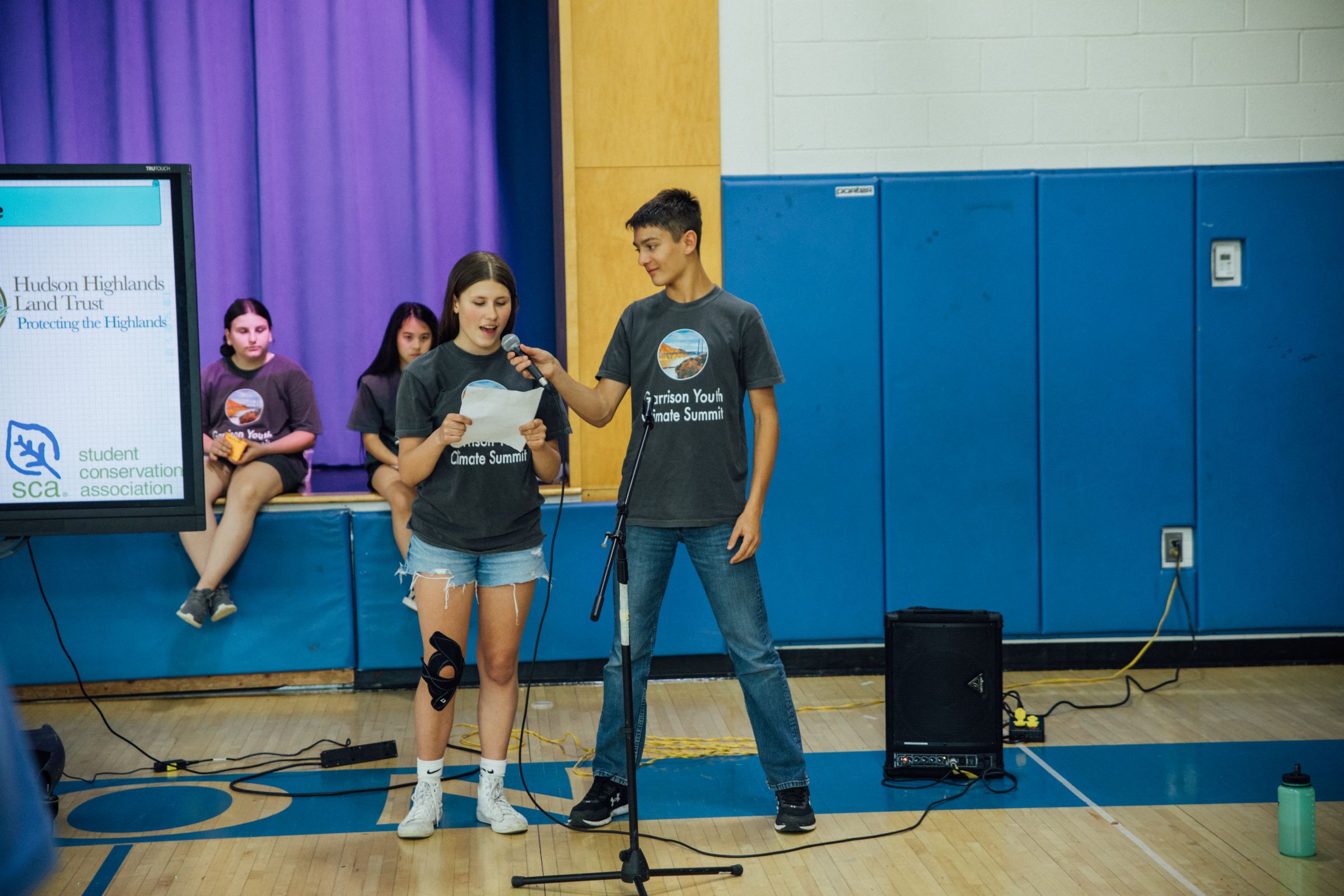Garrison 8th-grade Keynote Presenters outline ways for students to take civic action toward environmental progress, including various ways to volunteer with local and national conservation organizations. Photo Credit: Erik Wik