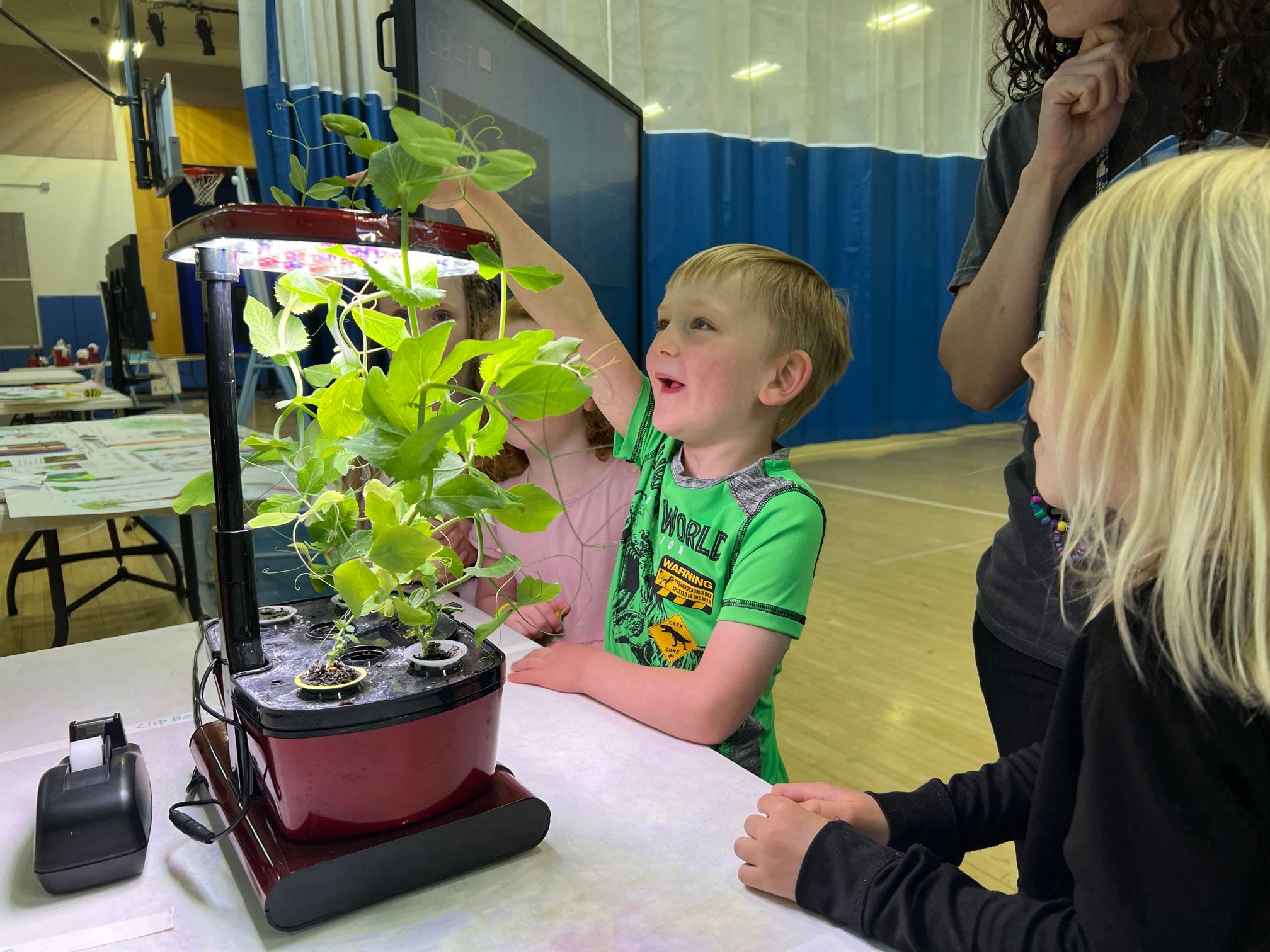 Garrison students explore the 1st-grade long-term research project about the effect compliments have on plant growth. Photo courtesy of Rachel Arbor