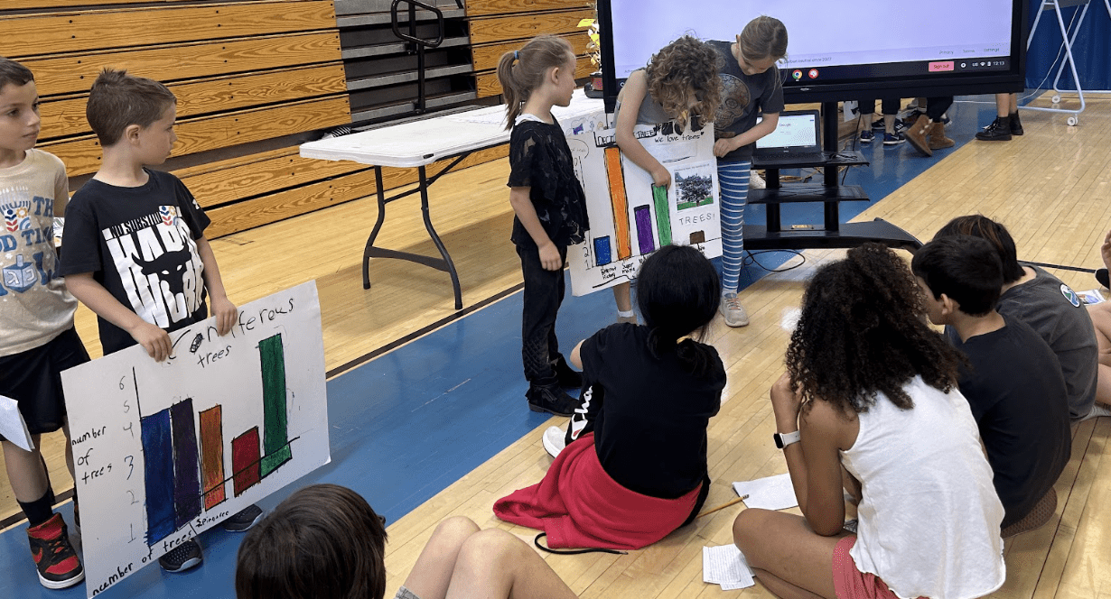 Garrison 2nd-grade students present their research on the types of trees on the Garrison School campus and how this relates to their long-term citizen science project on carbon sequestration.