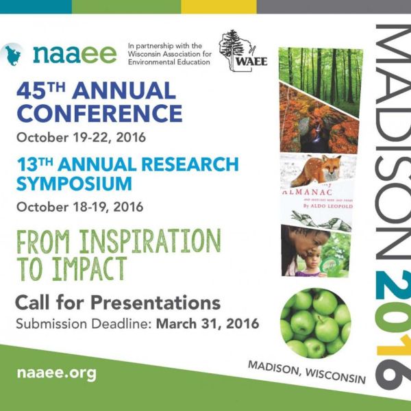 Get your presentation proposals in for the North American Association for Environmental Education (NAAEE) Research Symposium in Madison, WI this October. Come and join this outstanding community of researchers! Proposals due March 31st! Spread the word!
