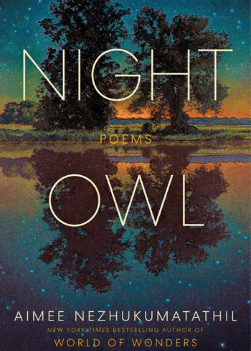 Aimee Nezhukumatathil is the New York Times best-selling author of the poetry book, Night Owl (Ecco, 2026), and two illustrated collections of essays, Bite by Bite, and World of Wonders: In Praise of Fireflies, Whale Sharks, & Other Astonishments, which was chosen as Barnes and Noble’s Book of the Year and named a finalist for the Kirkus Prize. She also wrote four previous award-winning poetry collections: Oceanic, Lucky Fish, At the Drive-In Volcano, and Miracle Fruit. With the poet Ross Gay, she co-authored the chapbook Lace & Pyrite, a collaboration of epistolary garden poems. Her writing appears twice in The New Yorker, The Nation, the Best American Poetry Series, The New York Times Magazine, ESPN, Poetry magazine, American Poetry Review, and The Paris Review.