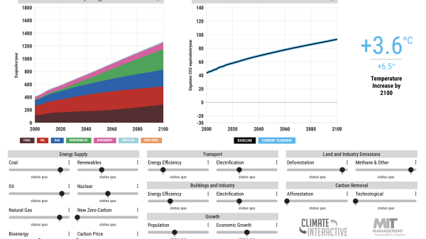 En-ROADS, was developed by MIT Sloan School and Climate Interactive. It is calibrated to research and business climate models to generates different possible scenarios that may result from actions taken in several sectors of our society.