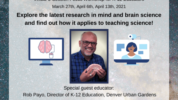 Understanding how we learn and how the brain works is critical to supporting learning! How can you enhance your understanding of hands-on, minds-on, inquiry-based science education and gain ideas to inspire deep learning in your socially-distanced, hybrid, or remote classroom? Join the Wade Institute for Science Education and guest educator Rob Payo, Director of K-12 Education at Denver Urban Gardens, for a series of interactive, virtual sessions on the latest research in mind and brain science and how it applies to teaching science.