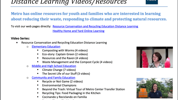Oregon Metro Resource Conservation and Recycling Distancing Learning